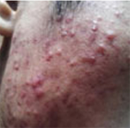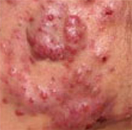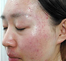 中度型:包含两个周期,初期有粉刺,中等暗疮和脓包,总皮损数在31-50个之间;后期有大量暗疮和脓包,总皮损数量在51-100个之间,结节少于3个