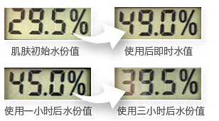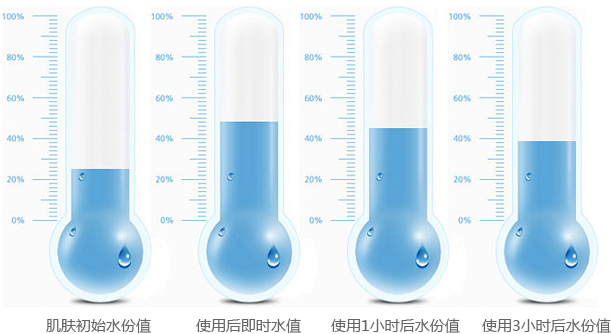 测试使用者前后及一定时间后,面部肌肤的水份值,分析水份子的差值大小来评定产品的保湿性是否优秀。